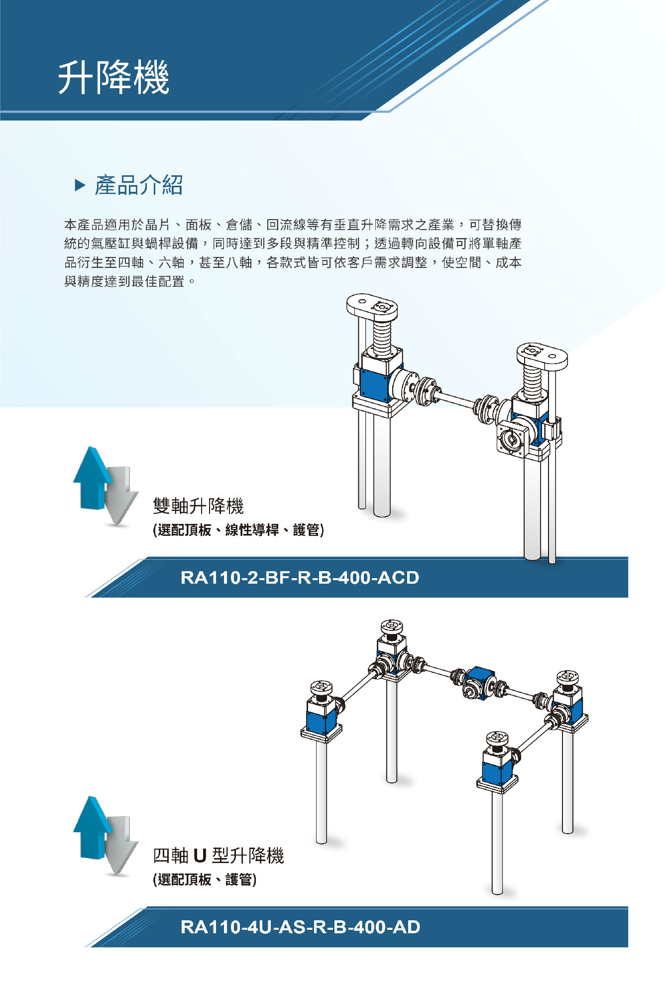 BF系列雙軸升降機(jī)可選配頂板,線性導(dǎo)桿,護(hù)管。適用于晶片、面板、倉儲(chǔ)、回流線等有垂直升降需求的產(chǎn)業(yè),可替換傳統(tǒng)的氣壓罐與蝸桿設(shè)備,同時(shí)達(dá)到多段與精準(zhǔn)控制。