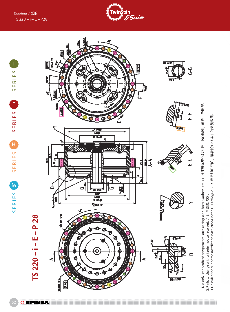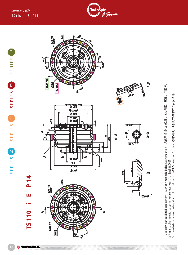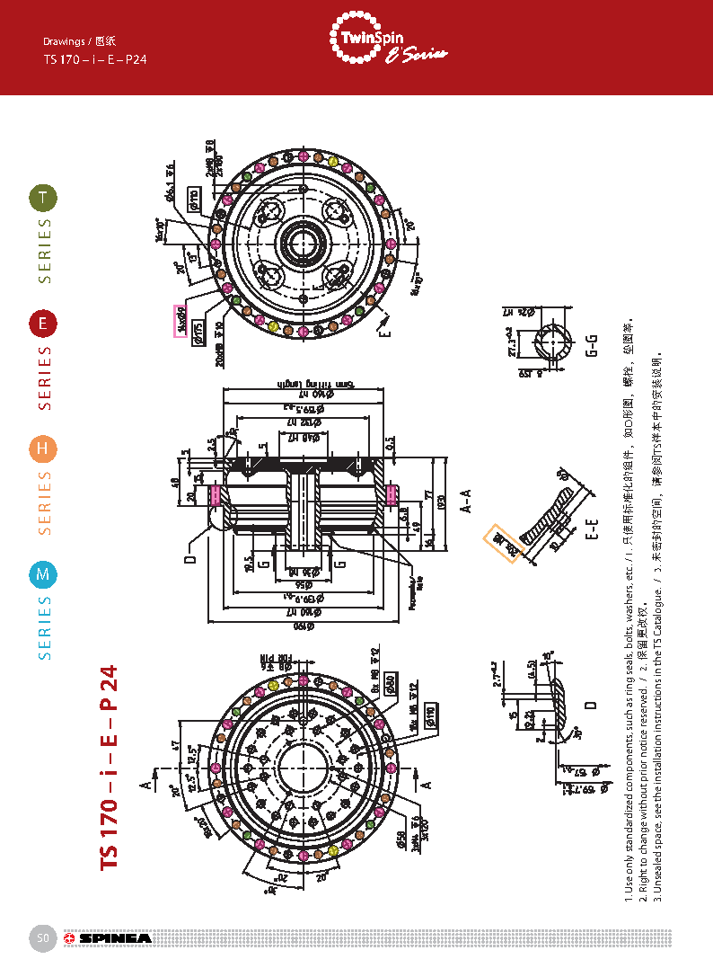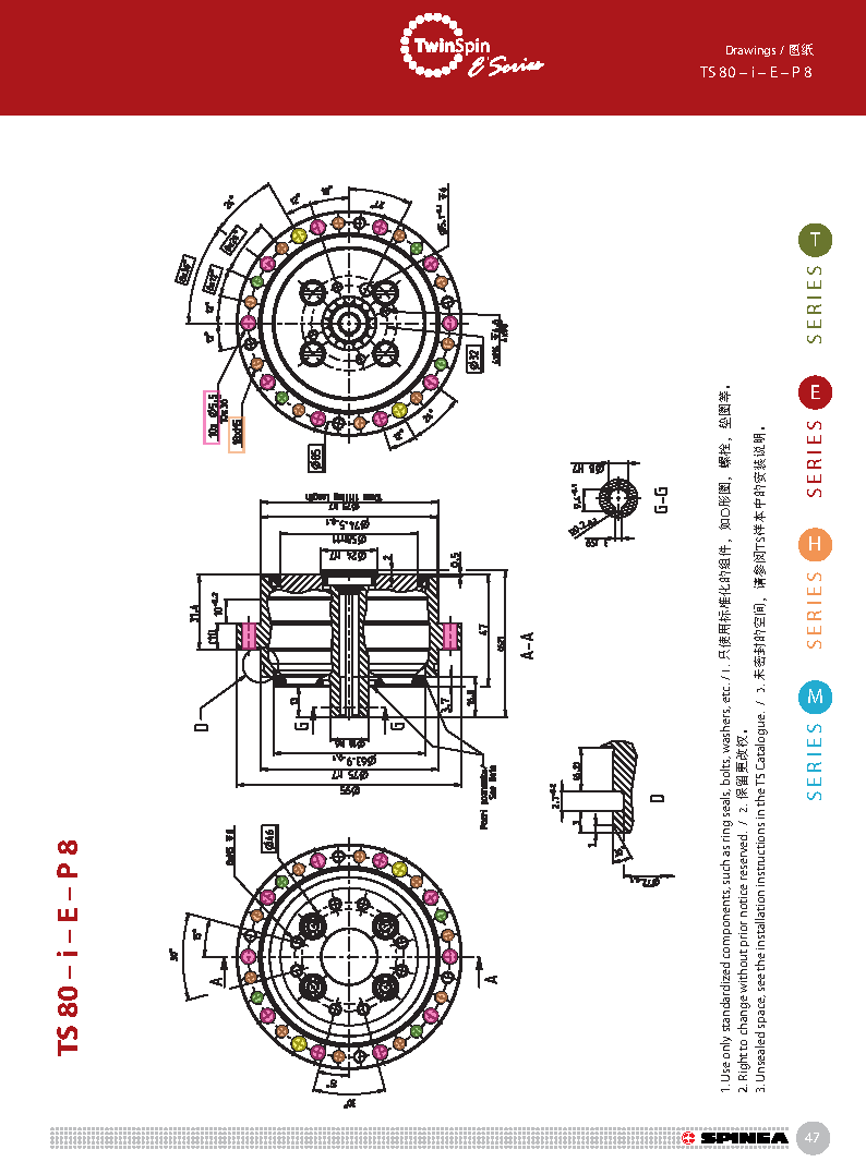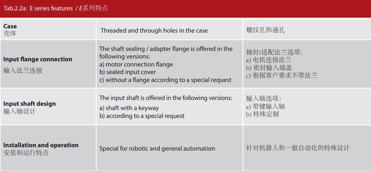 E 系列是帶有法蘭形殼體的Twinspin高精度減速機(jī)。 該系列內(nèi)部包含精密減速機(jī)構(gòu)和高強(qiáng)度交叉滾子軸承,又 名“軸承式減速機(jī)”。這種設(shè)計(jì)可以把負(fù)載直接安裝在減 速機(jī)輸出法蘭上,省去輸出端的額外軸承。 T系列采用模塊化設(shè)計(jì),允許用戶通過電機(jī)法蘭的方式連 接各種電機(jī)。 標(biāo)準(zhǔn)的T系列減速機(jī)為半密封狀態(tài);需要用輸入法蘭和墊 圈密封。SPINEA可根據(jù)客戶電機(jī)結(jié)構(gòu)提供全密封帶輸入 法蘭的減速機(jī)。