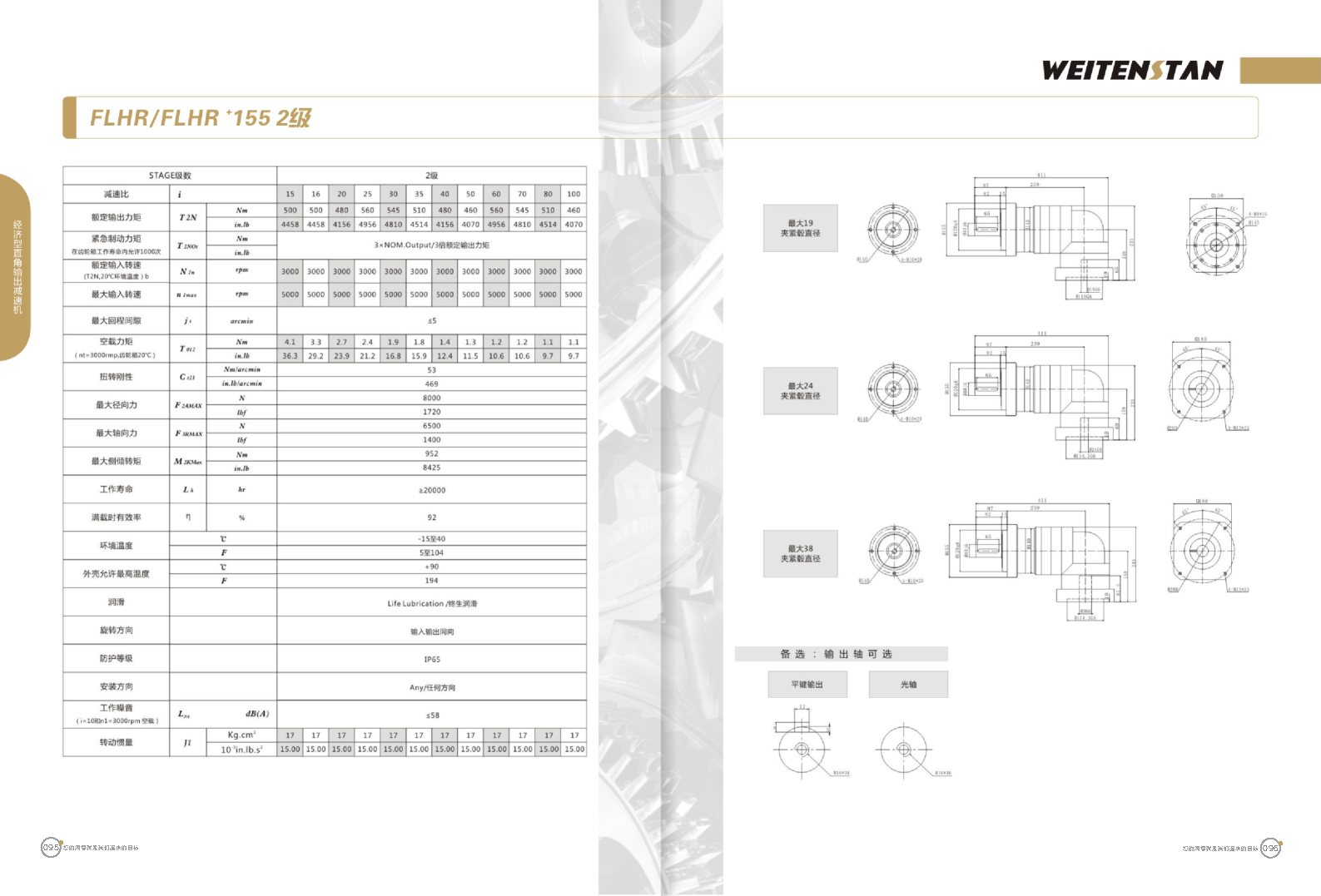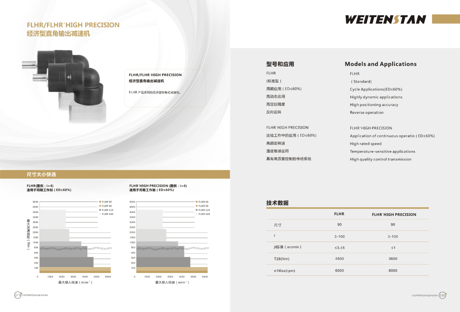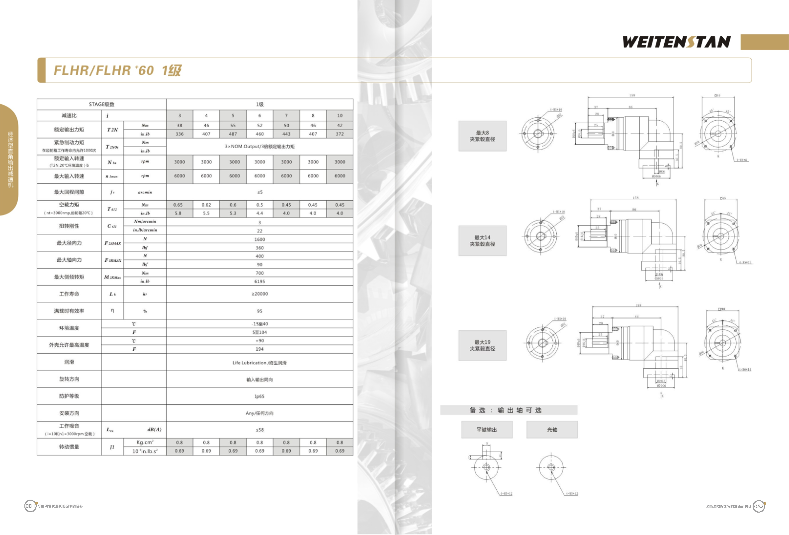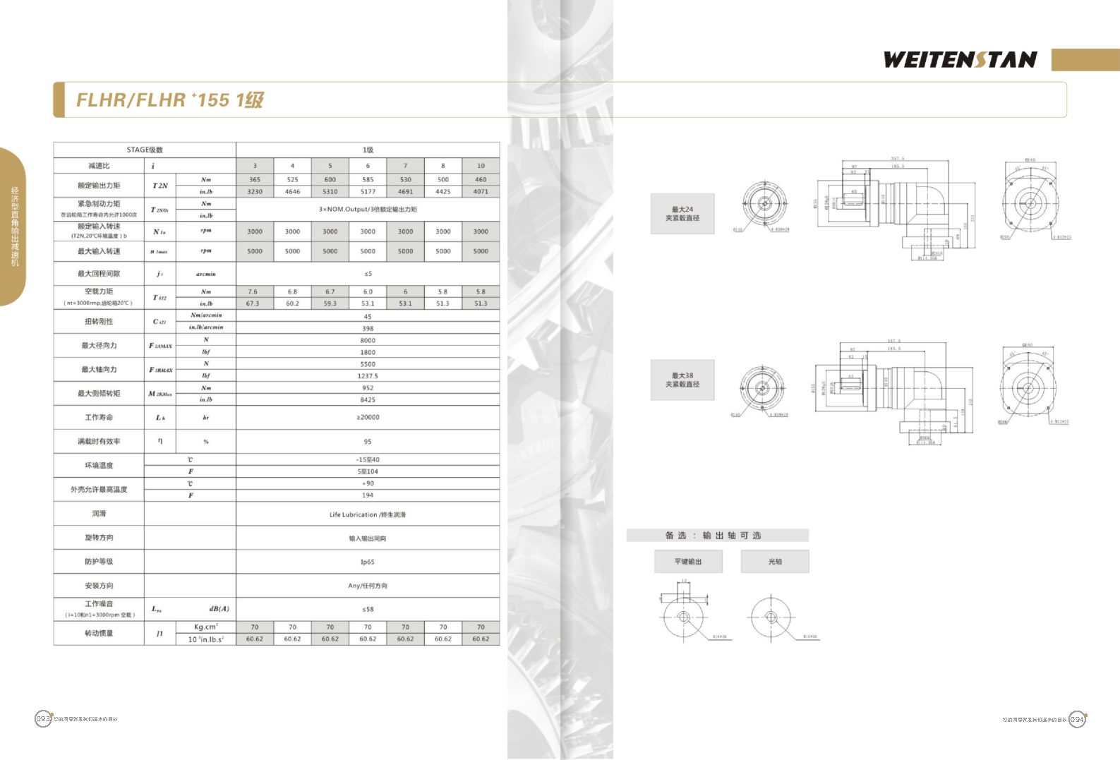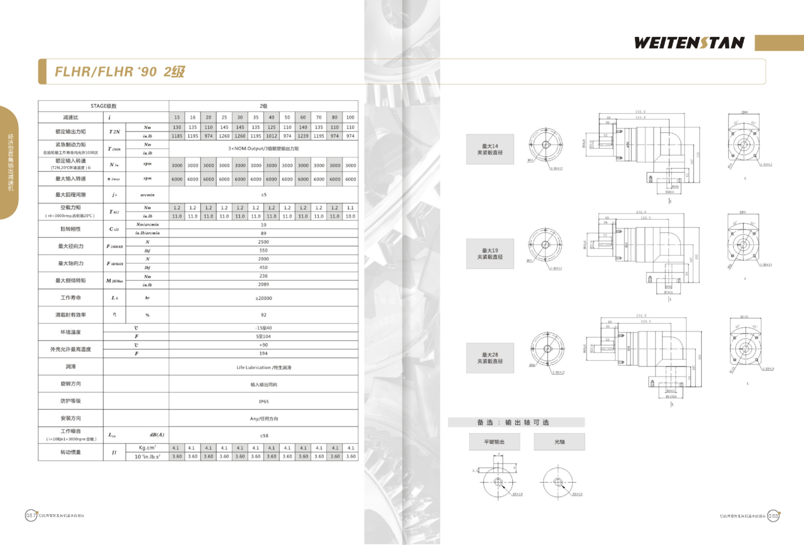 FLHR系列經(jīng)濟型直角輸出減速機。 FLHR產(chǎn)品系列的經(jīng)濟型轉(zhuǎn)角式減速機。 極高的功率密度。盡管以往系列性能極為出色,但我們成功的將扭矩提高了近40%。不斷提高極限值,典型威騰斯坦產(chǎn)品! 電機安裝簡易。電機可安全簡易的一步安裝,另外您也可以選擇威騰斯坦享有的專利權(quán)的,帶有長度補償軸的安裝。 任意位置安裝。不管你在哪個位置安裝,你的齒輪箱始終有相同的潤滑油/潤滑脂量。安裝靈活、齒輪箱能夠垂直、水平、與從動軸一起向上或向下安裝。 極高的定位精度。根據(jù)用戶需求,你可獲得回程間隙小于角分的高型行星齒輪箱。這也大大提高了你應(yīng)用上的定位精度。 通過齒輪嚙合,運轉(zhuǎn)平穩(wěn)。相比直齒嚙合齒輪箱,本公司的斜齒嚙合齒輪箱運轉(zhuǎn)噪音減低了50dB-A,你深知50dB-A所創(chuàng)造的價值遠遠高于70dB-A。此外還有:不再感動振動,運轉(zhuǎn)平穩(wěn)到令人驚訝。 世界水平的預(yù)期壽命。原材料進行了優(yōu)化,幾何形狀同樣進行了優(yōu)化。